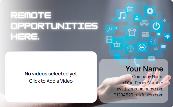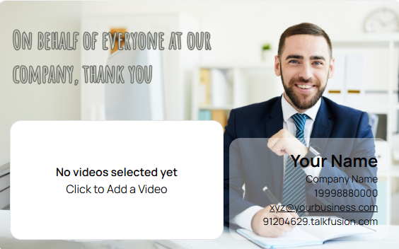 Send your logo, images and text to the artwork department of Talk Fusion and they will create a custom video email template for you within 7 days! Custom video email templates look great, save time, and are perfect for: